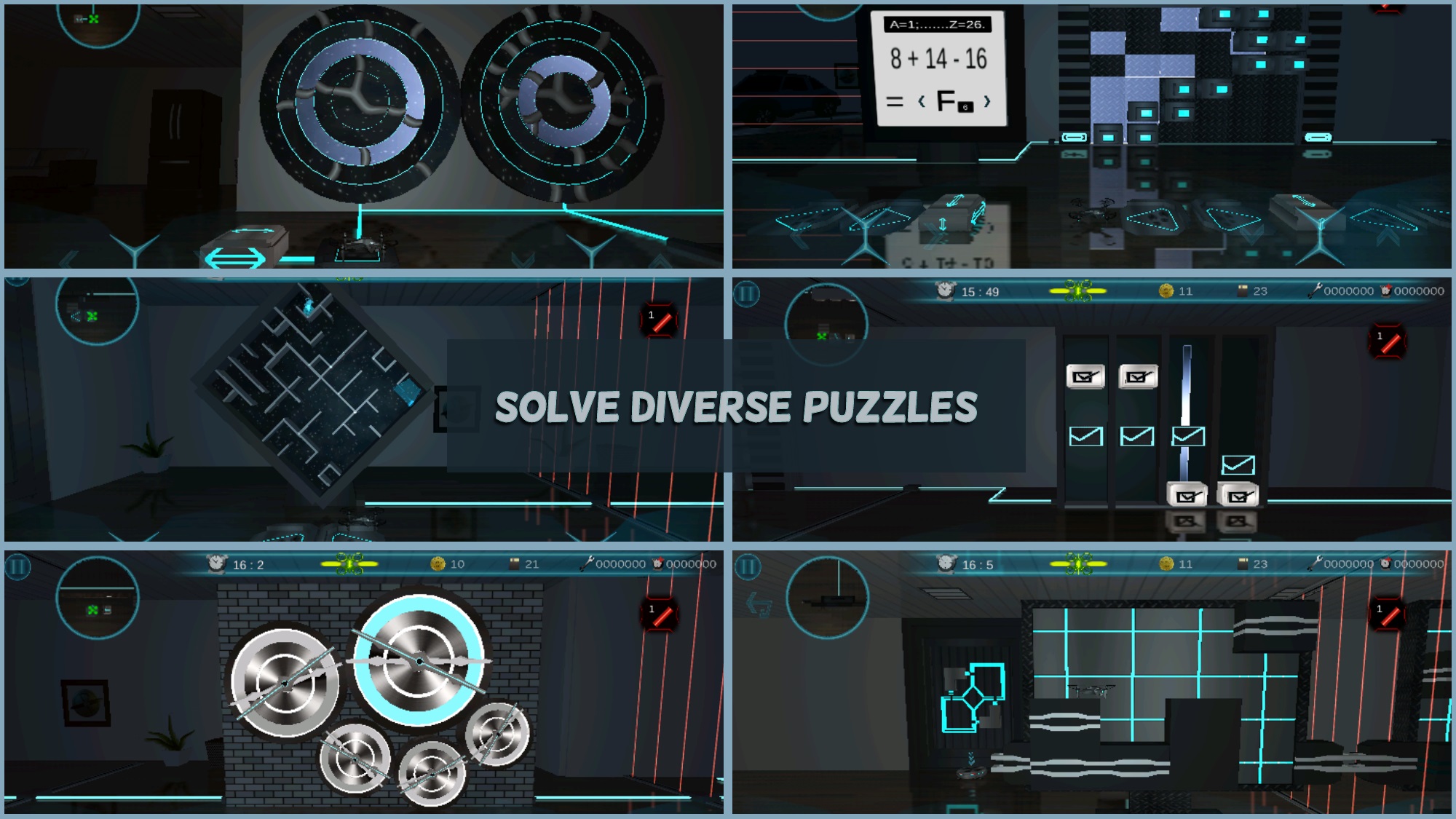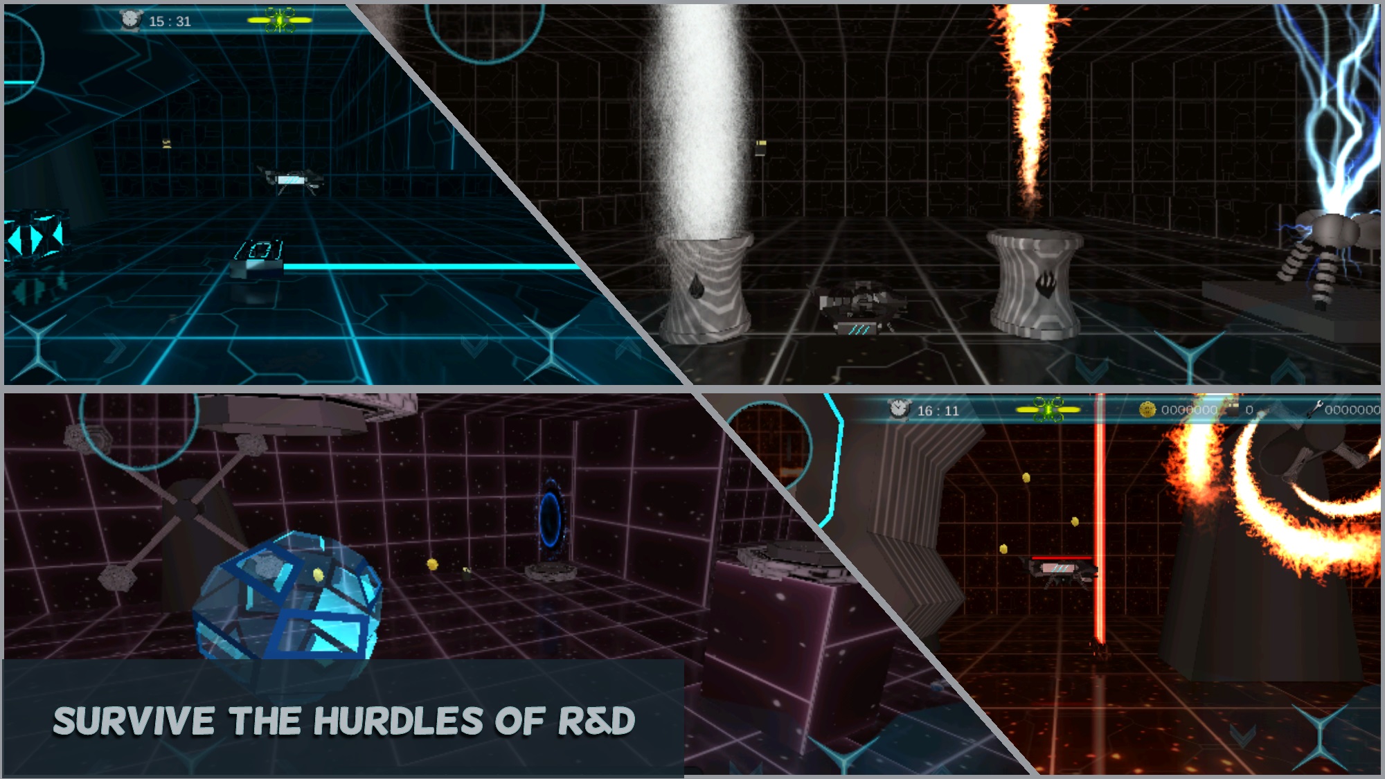 Collectibles: collect coins, data, revives, and extra-time, earn badges to advance in the game.